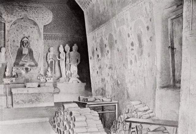 Se han realizado importantes hallazgos de seda muy antigua en lugares ubicados a lo largo de la Ruta de la Seda. Uno de ellos fue realizado en 1907 por el arqueólogo británico Aurel Stein, quien encontró en una de las salas de la cueva un tesoro formado por 50.000 reliquias culturales, entre ellas pinturas sobre seda en muy buen estado.. Se cree que estos tesoros fueron escondidos en esta habitación alrededor del año 1015 por monjes budistas que temían una invasión Tangut, permaneciendo ocultos durante casi 900 años.