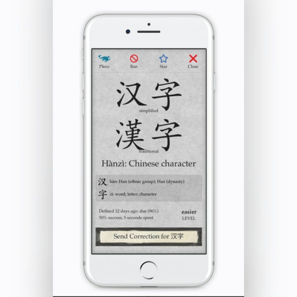 Pleco cuenta con lector de documentos, lector de pantalla, tarjetas de vocabulario, audio, diccionario, tarjetas de memoria personalizables, guía de orden de trazos para ayudar a descubrir cómo escribir los caracteres chinos en el orden correcto.y las dos características que más nos gustan, el buscador de palabras ‘en vivo’ usando la cámara del dispositivo en una imagen fija. y el reconocimiento de escritura a mano en chino. Esta opción de escribir a mano en lugar de en pinyin es muy útil al buscar caracteres que se desconocen.