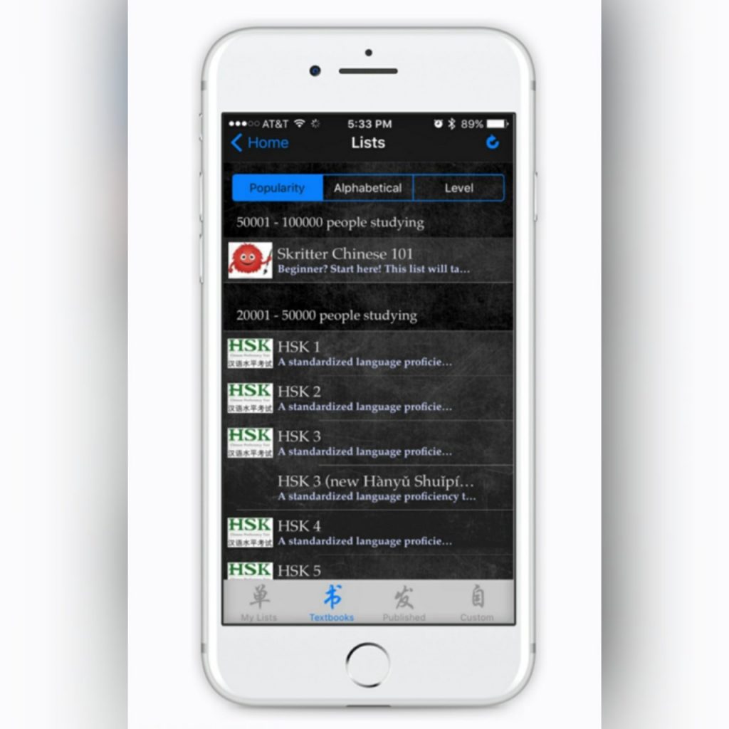 Skritter es la mejor herramienta disponible para aprender y repasar a diario los caracteres chinos. Es una aplicación muy buena para memorizar el orden correcto de los trazos, los caracteres y su pronunciación, cada uno con un ejemplo de uso. Según las respuestas muestra los caracteres con los que se tiene más dificultad, corrige los errores si se escribe un trazo incorrectamente y muestra el orden para ayudar a recordar cómo escribirlo y leerlo. Aunque ésta es la característica principal de Skritter, también pone a prueba el conocimiento del significado, tono y lectura de los caracteres.